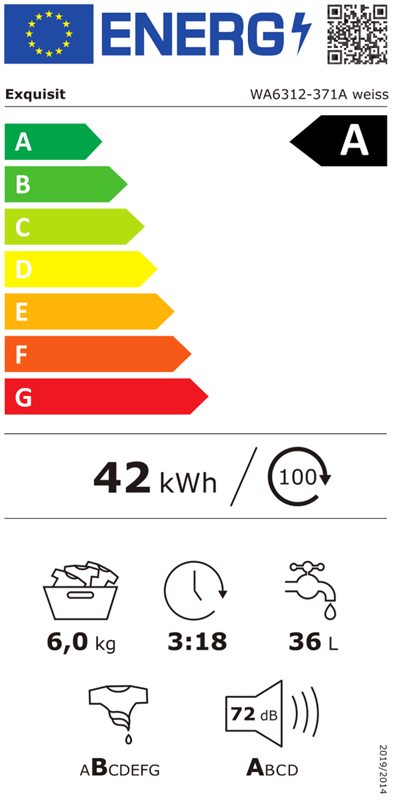 Exquisit Waschmaschine WA6312-371A (weiß) A, 6, 1200