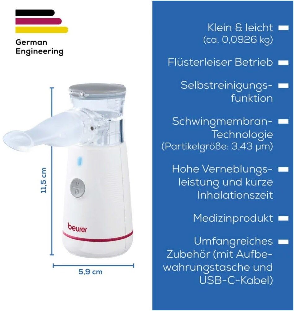 Der Beurer IH 47 Inhalator bietet eine schnelle und effektive Inhalation für zu Hause und unterwegs. Ideal zur Behandlung von Erkältungen, Asthma und anderen Atemwegserkrankungen. Das Inhalationsgerät ist besonders handlich und leise und für Erwachsene und Kinder geeignet.