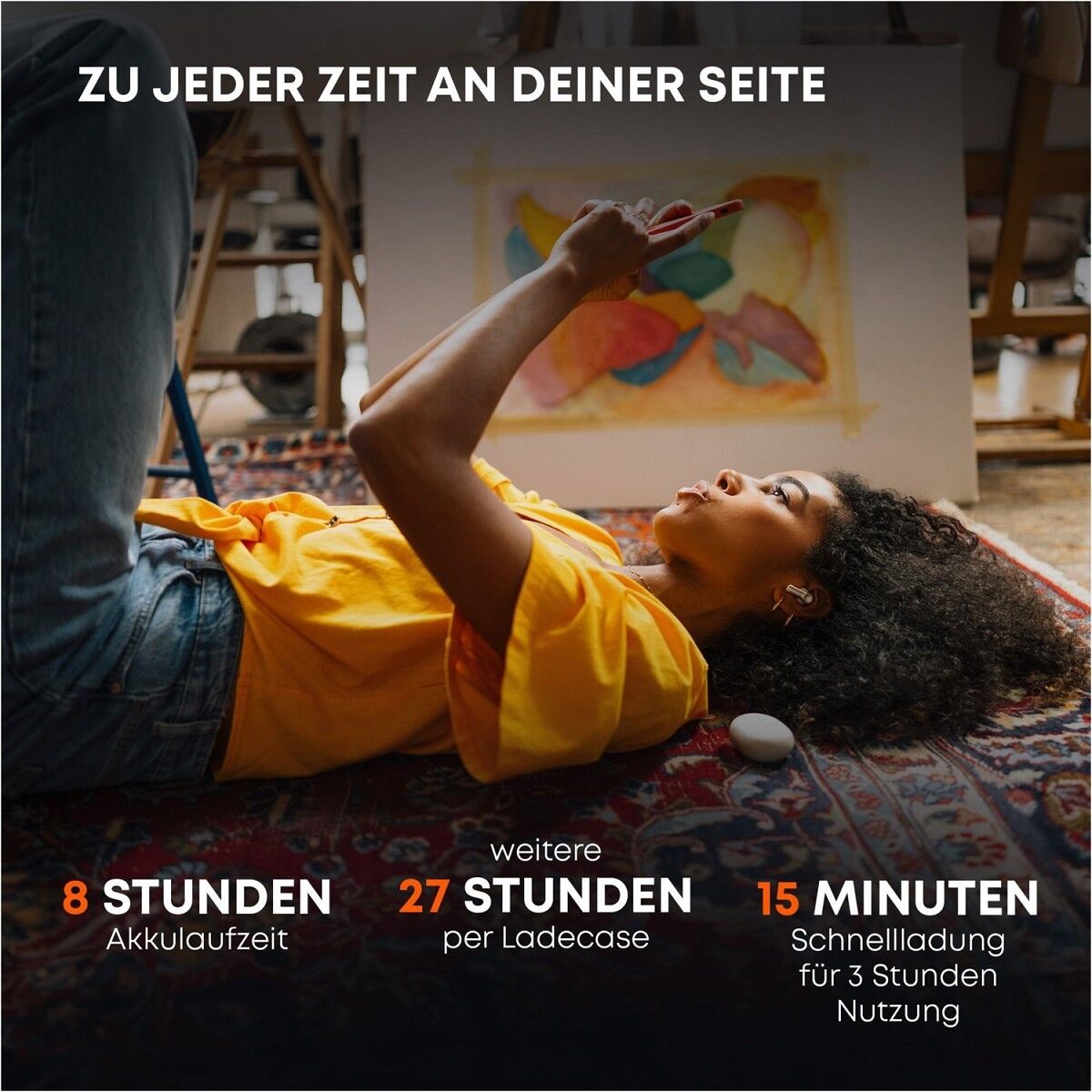 Dank Bluetooth® 5.3 inklusive LE-Audio verbinden sich die Kopfhörer schnell und latenzarm dank LC3 Codec. Das funktioniert auch mit mehreren Geräten gleichzeitig. Beim Telefonieren fangen insgesamt 6 Mikrofone die eigene Stimme ein und filtern dabei auch in lauten Umgebungen störende Hintergrundgeräusche heraus. Und das Beste? Erst nach 8 Stunden (6h mit ANC) stoppt der Musikspaß – aber nur für einen kurzen Moment. Das Ladecase hat noch weitere 19 Stunden Akkulaufzeit in petto. Wird es einmal knapp, kann der AMIRON 100 für 15 Minuten im Ladecase aufladen und schon können weitere 3 Stunden Musik oder Podcast gehört werden.