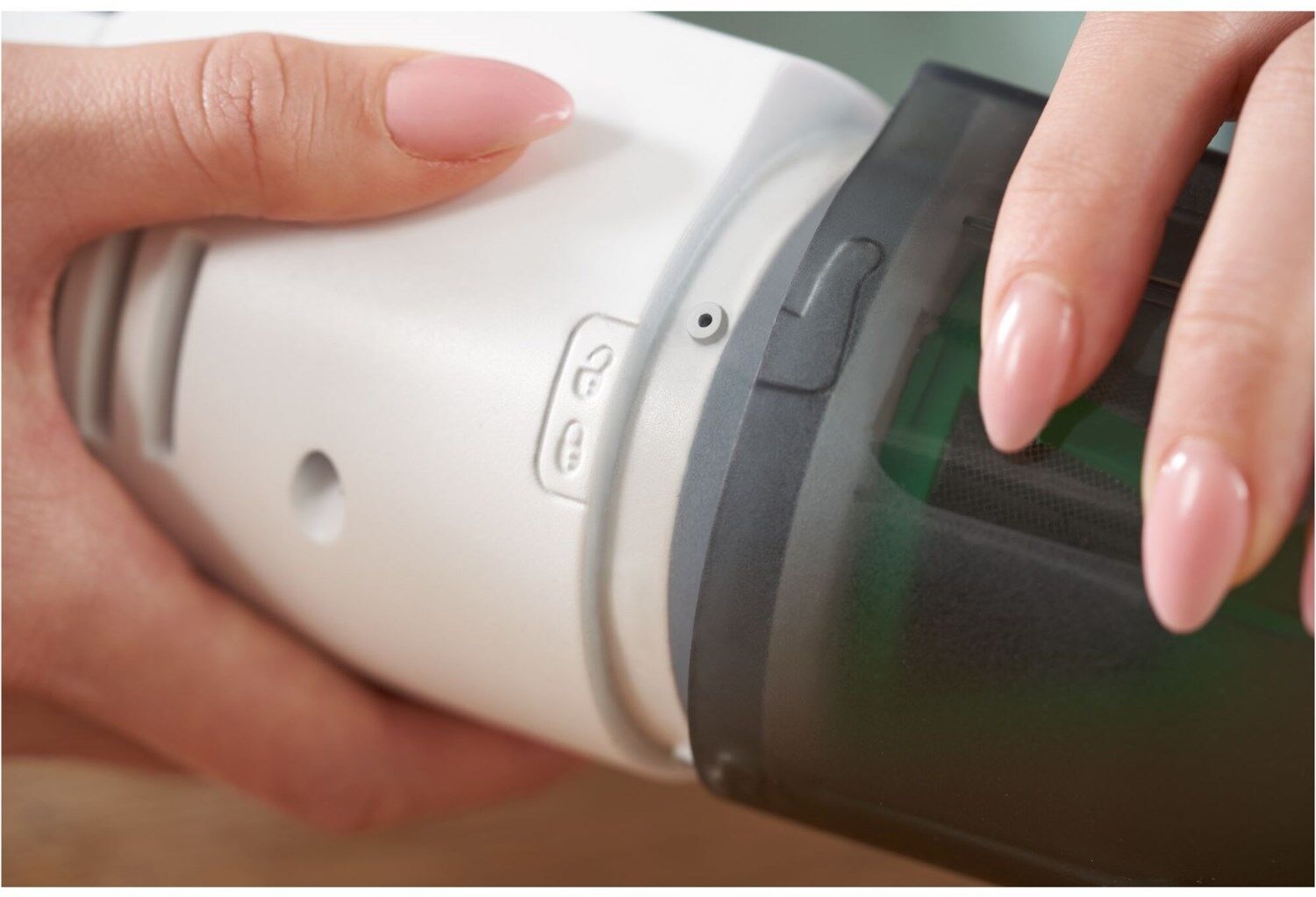 Transparenter Schmutzbehälter zeigt den aktuellen Füllstand an. Lässt sich einfach öffnen, ohne mit dem Schmutz in Berührung zu kommen