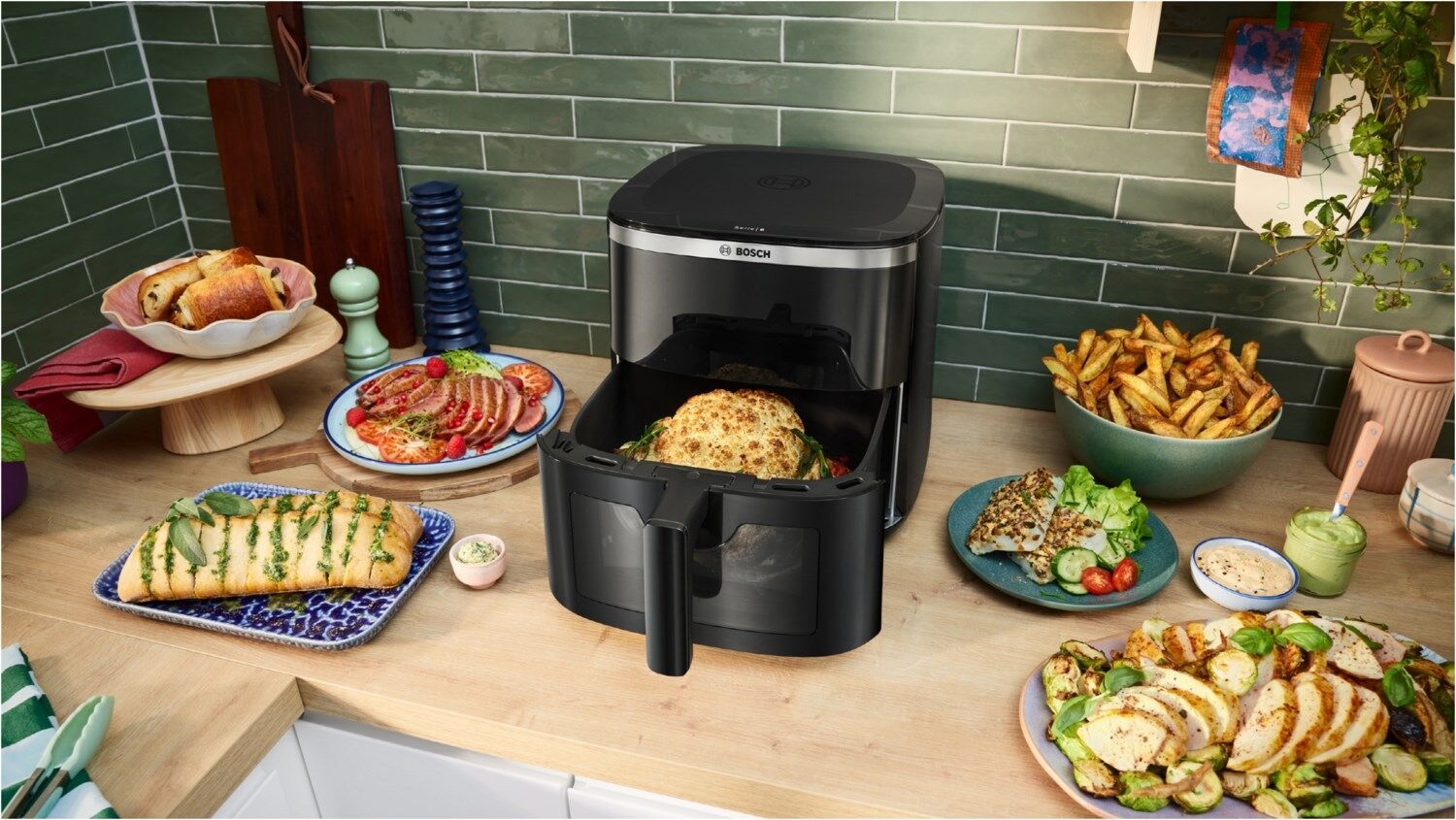 Einfach schneller. Schneller lecker. Die Bosch Heißluftfritteusen: super schnell gekocht und wieder sauber gemacht.