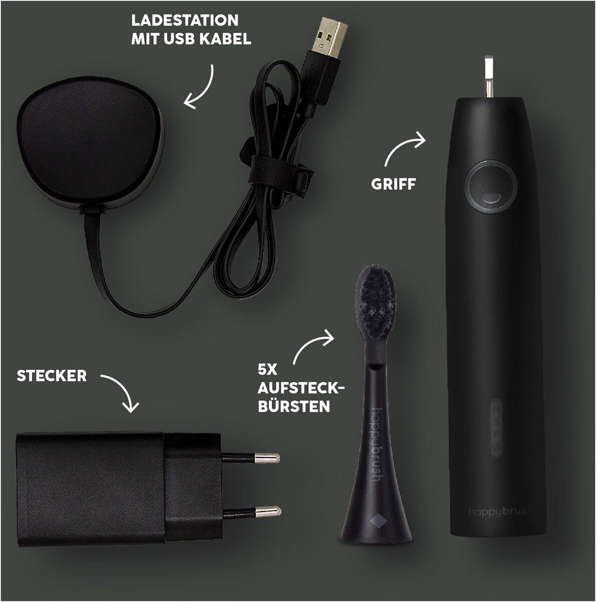 Produktinformationen happybrush ECO VIBE 3 Starterkit + 4 Refills (Schwarz)
