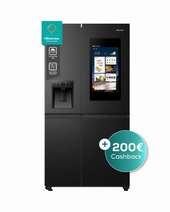 Digitalisiere Deine Küche mit dem 21-Zoll-Smartscreen, der in den Hisense-Kühlschrank integriert ist. Dieses Gerät ist nicht einfach nur ein Kühlschrank – es bildet das Herzstück einer umfassenden digitalen Küchenrevolution. Verbinde es nahtlos mit Deinem Smartphone oder anderen smarten Geräten für ein vollständig vernetztes Smart-Home-Erlebnis. Darüber hinaus wertet das moderne Design die Ästhetik Deiner Küche spürbar auf.