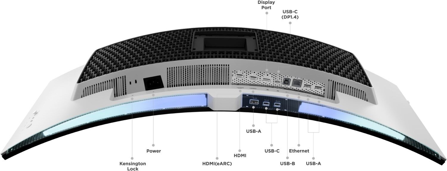 Das Legion Pro 34WD-10 verfügt über eine RGB-Beleuchtung an der Unterseite der Frontblende, um die Gaming-Atmosphäre zu verstärken. Die Lichteffekte kann über die Artery Software (Lenovo Display Control Center) angepasst werden. Die Beleuchtung kann auch automatisch entsprechend dem Bildschirminhalt, der Lautstärke sowie der Geschwindigkeit der Tastatur- und Mausbewegungen geändert werden.